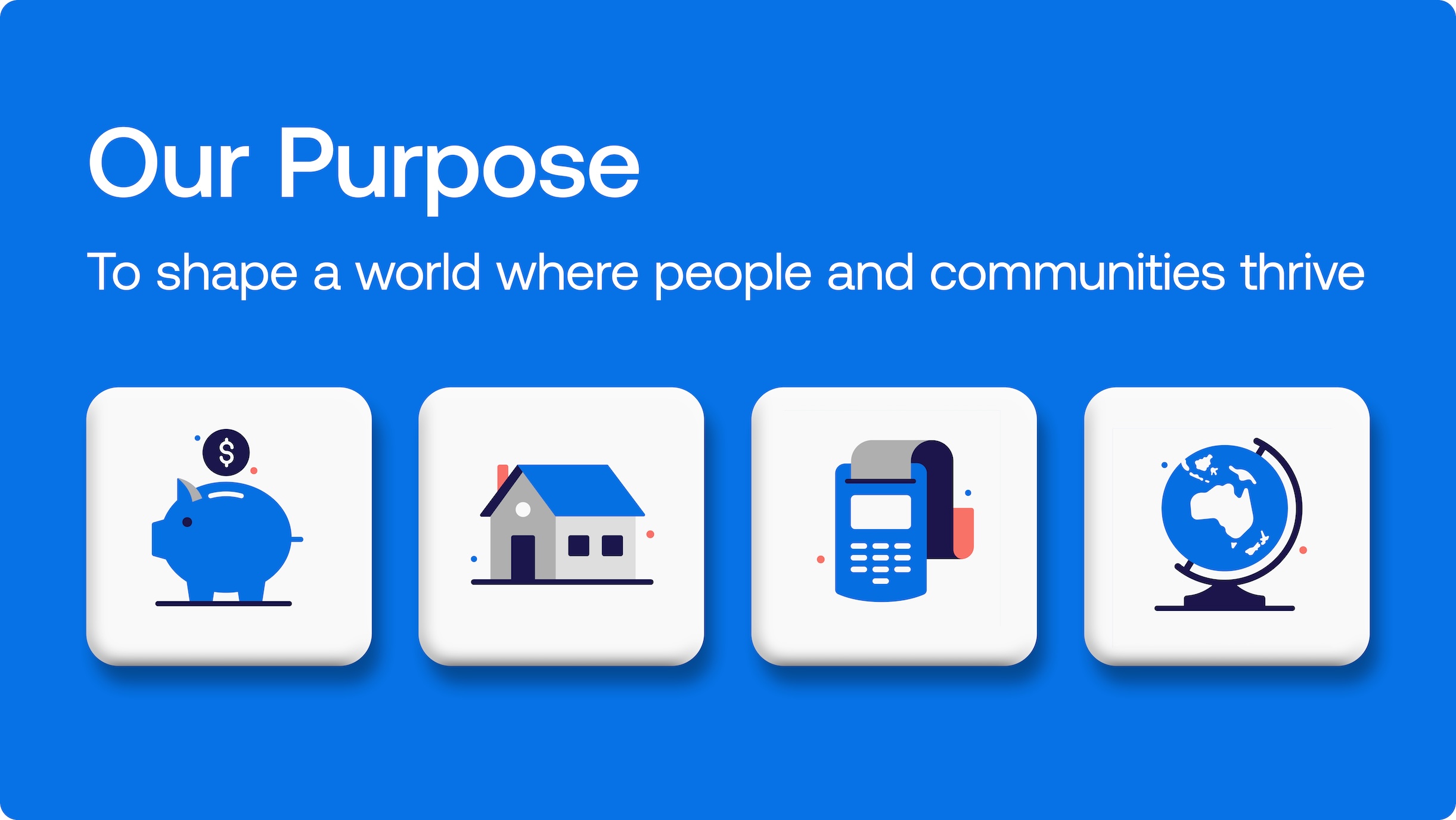 Our Purpose is to shape a world where people and communities thrive. It explains ‘why’ we exist and drives everything we do at ANZ, including the choices we make each day about those we serve and how we operate.